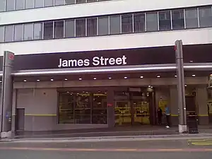 Liverpool James Street is, as its name denotes, on James Street near the corner of The Strand; it is served by the Wirral Line only. James Street is also the closest station to the Waterfront area and Mathew Street[5] (of the Cavern Club fame).