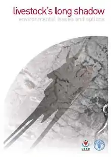 Livestock's Long Shadow: Environmental Issues and Options is a United Nations report, released by the Food and Agriculture Organization (FAO) of the United Nations on 29 November 2006,[1] that "aims to assess the full impact of the livestock sector on environmental problems, along with potential technical and policy approaches to mitigation".[1] It stated that livestock accounts for 18% of anthropogenic greenhouse gas emissions, a figure which FAO changed to 14.5% in its 2013 study Tackling climate change through livestock.