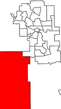 Significant changes were made to the district in the 2010 boundary redistribution. The Blood Reserve was transferred to the electoral district of Cardston-Taber-Warner while land south of the town of High River that was in Highwood as well as a portion of land in that constituency in the north west and the portion of land that was part of the abolished Foothills-Rocky View electoral district south of Tsuu T'ina Nation was transferred into the electoral district.[1]
