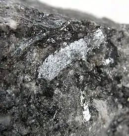 Livingstonite is a mercury antimony sulfosalt mineral. It occurs in low-temperature hydrothermal veins associated with cinnabar, stibnite, sulfur and gypsum.