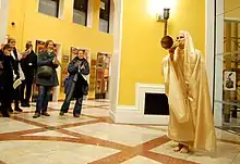 Aggiss performed Guerilla Dances as pop-up pieces at festivals, including the British Dance Edition Liverpool, Glasgow Merchant City Festival and Loikka Dance Film Festival, Helsinki, Finland.[47] Carrying a megaphone and a beatbox, Aggiss would make a surprise appearance in front of the audience for another dance piece. Jana Návratová, the Czech dance critic, described the impact: 'During the interval or before the performance, when people usually shift in their seats switching off cells and finishing sandwiches, she stepped onto the scene and speaking through a megaphone claimed our attention. As we calmed down, each time more eagerly, she rewarded us with short cartoon sketches from the history of dance....We could see only a few scraps from this treasure but there is no doubt that this Vivienne Westwood of dance is a living jewel of the United Kingdom.'[48]