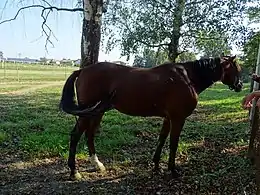 Crossbreeding the Ljutomer Trotter with foreign trotters, such as the French, Orlov, Norfolk and American, resulted in better speed performance.[4] In year 1884 the first Norfolk Trotter Radautz, and Orlov Trotter Krolik were imported into the breeding area. Eventually crossbreeding with American Thoroughbred prevailed, but there were also some recorded attempts of pairing with other trotters, such as Orlov Trotter Hipoli and a few French Trotters. The former stud farm of trotters in Turnišče near Ptuj (active 1947–1965) greatly influenced development of the Ljutomer Trotter by importing breeding stallions into Ljutomer. The Turnišče stud farm arose from the abandoned trotter stud farm Djoko Djunderski in Kulpin, Vojvodina, and after closing in 1965 the farm was moved back to Serbia, at first to Pančevo and then to Ada.[3]
