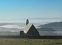 The church, dedicated to Saint Tecwyn, lies at an altitude of a little over 150 m, and is the only ancient church in Ardudwy not on the coast (although the present building is Victorian). It has views over the large Dwyryd estuary towards Portmerion. The church only operates for a few services each year, but as part of the national Small Pilgrimage Places network,[3] it marks the end of the 7 km pilgrimage route, Saint Tecwyn's Way. This starts at the church of Llanfihangel-y-traethau to the southwest, which has a window depicting the saint coming ashore in his coracle.