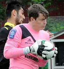 Saxton was born in Alsager and played in the academies at Liverpool, Bolton Wanderers and Stoke City before turning professional with Plymouth Argyle in 2008.[2] He was released by Argyle in May 2010 without making a first team appearance.[3] Saxton spent the 2010–11 season at Bradford City but failed to make an appearance.[4] Saxton then played for non-league Vauxhall Motors before moving to Sweden to play for Ånge IF.[5] Saxton joined GIF Sundsvall in February 2015.[6] He made his Allsvenskan debut on 7 June 2015 in a 1–1 draw with Kalmar FF.[7] In January 2021, it was announced that after five years, Saxton would be leaving Sundsvall.[8]