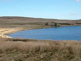 Llyn Alwen is a small natural upland lake on Mynydd Hiraethog in Conwy County Borough, Wales at SH 898 565. It lies on the rolling Silurian moorland to the north-west of Mwdwl-eithin and about 10 km to the east of Betws y Coed. The discharge from the lake flows under the A543 road to form the headwater of Alwen Reservoir. The area was used as a special stage during the 2015 Wales Rally GB.