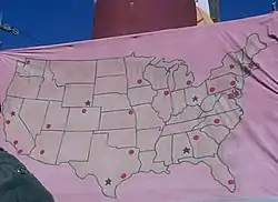 In the episode "Black Jack", the following cities were marked on a map made available at Black Jack Fairgrounds.[1]