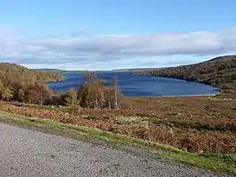 Loch Duntelchaig (from the Scottish Gaelic Loch Dun Seilcheig) is a freshwater loch in the traditional county of Inverness-shire in the Scottish Highlands. It extends 5 kilometres (3.1 mi) from the southwest to its outflow in the northeast and measures up to 1.75 kilometres (1.09 mi) at its widest. The loch drains via Loch a Chlachain into the River Nairn. Loch Duntelchaig is over 60 metres (200 ft) deep towards its south end.[1] It is also the main reservoir for Inverness sitting less than a kilometre from the secondary reservoir Loch Ashie.
