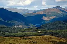 Loch Lubnaig (Loch Lùbnaig in Gaelic) is a small freshwater loch near Callander in the Stirling council area, Scottish Highlands. It lies in the former county of Perthshire. It is part of the Loch Lomond and The Trossachs National Park.[3][1][2]