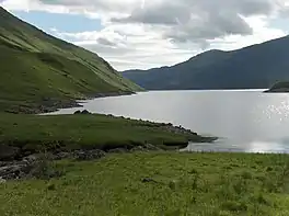 Loch Mullardoch is a major reservoir in Glen Cannich in the Northwest Highlands of Scotland. It was created by the damming in 1951 of the River Cannich just upstream of Mullardoch House, as part of the Affric-Beauly hydro-electric power scheme. A car park at the southern end of the dam is the terminus of the public road up Glen Cannich. The reservoir extends for about 14 km westwards up the glen to the point where the Abhainn a Choilich and Abhainn Sithidh burns drop down from the West Benula deer forest.[1]