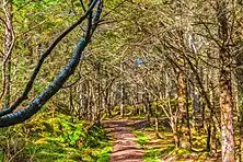 Overlooking Lochinver, a 40-hectare (99 acres) woodland area provides a picturesque blend of forested and coastal vistas punctuated by the iconic Suilven peak.