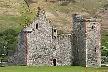 Lochranza Castle is an L-plan fortified tower house situated on a promontory in Lochranza, on the northern part of the Isle of Arran in Scotland. Most of the current structure was built in the 16th century.[1]