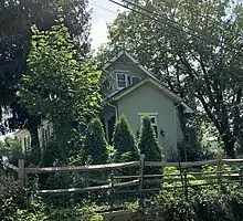 The oldest home still standing is west of the crossroads, built in 1750.[24] The home at the northeast corner of Locust Valley and Gun Club road was built in 1820.[25] Built in 1850,[26] the brick home across from the schoolhouse is built in the more traditional Federal style.
