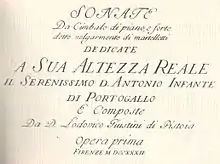 Giustini's main fame rests on his work 12 Sonate da cimbalo di piano e forte detto volgarmente di martelletti, Op.1, published in Florence in 1732, which is the earliest music in any genre written specifically for the piano. They are dedicated to Dom António de Bragança, the younger brother of King João V of Portugal (the Portuguese court was one of the few places where the early piano was frequently played).