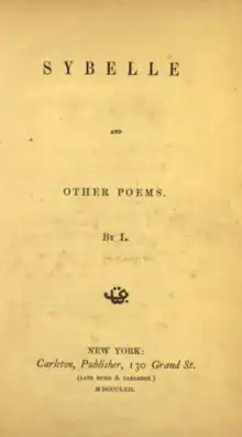 Though a prolific writer, Adams published only one book, entitled Sybelle ond Other Poems and with the pen name, "L.". While living in Washington, her letters on life in that city were published in the Detroit Advertiser and Tribune. While visiting her oldest sister in Illinois, in 1853, her interesting letters from that state were published in the New-York Tribune. During the latter part of her life, when the business exactions of her position absorbed so much of her time, she did not write much poetry. Previous to this, her poems were published in the leading journals of Michigan.[2] Published posthumously, Letter From Washington, 1863-1865, by Lois Bryan Adams (Wayne State University Press, 1999), was edited by Evelyn Leasher, who also provided an introduction.[3]
