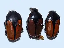 These cetoniids have the tip of the scutellum invisible, which makes the difference with the species of the genus Ischiopsopha.