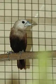 The white-headed munia (Lonchura maja) is a species of estrildid finch found in Teladan, Malaysia, Singapore, Thailand and Vietnam. This species is also introduced to Portugal. It is found in wetlands habitat. The status of the species is evaluated as Least Concern.