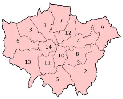 | 14 | West Central | Hammersmith and Fulham Kensington and Chelsea Westminster |