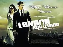 London Boulevard is a 2010 British independent crime film released in the United Kingdom on 26 November 2010. It is based on Ken Bruen's 2001 novel of the same name,[2] with screenplay and direction by William Monahan,[3] marking his directorial debut.[4] The cast features Colin Farrell, Keira Knightley and Ray Winstone.[4][5]