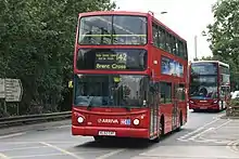 - ↑ "Celebrate 100 years of the 142 bus route, which goes through Edgware and Brent Cross". This is Local London. 22 March 2014. Retrieved 23 March 2014.