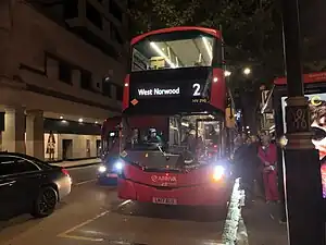 Route 2 was the last West End bus route that was operated by step-entrance buses other than AEC Routemasters. Ironically, it was also the first London bus route to use the Routemaster.[3]