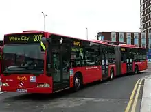 Route 207 was extended from Shepherd's Bush Green to White City bus station when Westfield London opened in November 2008.[8][9] A month earlier, passengers' organisation London TravelWatch had claimed that the route carried more passengers than any other route in Europe, although this was disputed by some commentators.[10] In 2009 it was announced by new Mayor of London Boris Johnson that articulated buses would be replaced by the end of 2011; it was initially expected that the 207 would be converted to rigid single-deck operation.[7]