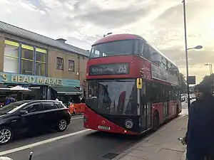 From October 2016, Arriva London began introducing a fleet of 32 New Routemaster buses to serve on the route. The rollout of new vehicles was completed in December 2016.[6]