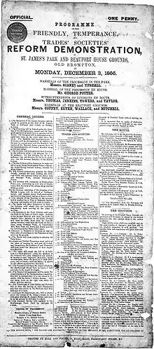 Programme issued by the London Working Men's Association for a Reform Demonstration in 1866.