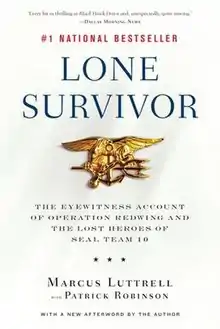Lone Survivor: The Eyewitness Account of Operation Redwing and the Lost Heroes of SEAL Team 10 (2007) is a non-fiction book written by Marcus Luttrell with assistance from novelist and ghostwriter Patrick Robinson and published by Little, Brown and Company. The narrative takes place in Afghanistan, following Luttrell and a group of U.S. Navy SEALs.[1] It has since seen a 2013 film adaptation of the same name, with Mark Wahlberg starring as Luttrell.