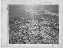 Detail of the Long Beach field, on an aerial photograph base, showing its position within Long Beach and surrounding communities.