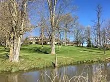 Long Meadows is a historic home located near Hagerstown, Washington County, Maryland, United States. It is a two-story, brick and fieldstone dwelling, historically painted yellow with green trim. In 1739, Thomas Cresap was granted 400 acres (1.6 km2) which he named Long Meadows, where he is said to have erected a stone and log fort over a spring near the Marsh Run. Stones from the fort are said to have been used in the construction of the barn wall located on the property.[2]