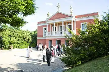 After its initial start and after a series of chamber music concerts in the drawing room of the founders' house, Banks Fee, Travelling Opera, a small touring opera company, was invited to give two performances with a small orchestra on a temporary stage in the courtyard of the stable block in aid of the charities Sue Ryder Care and Barnardo's.[4] A barn was then converted into a theatre, using seats from the Royal Opera House, Covent Garden, which were being discarded during the refurbishment of the late 1990s.[5]