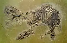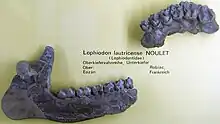 Lophiodon (from Greek: λόφος lóphos, 'crest' and Greek: ὀδούς odoús 'tooth')[2] is an extinct genus of mammal related to chalicotheres.[3] It lived in Eocene Europe between 52 to 38 million years ago,[3] and was previously thought to be closely related to Hyrachyus.[4][5] Lophiodon was named and described by Cuvier (1822) based on specimens from the Sables du Castrais Formation.[6]