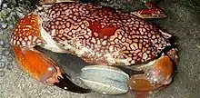- ↑ "Lophozozymus pictor, mosaic reef crab". www.sealifebase.ca. Retrieved 2021-03-01.