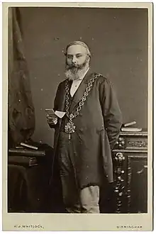 This is a list of the mayors and lord mayors of Birmingham in the West Midlands of England. Birmingham has had a mayor (and elected council) since 1838. The office was raised to the dignity of lord mayor when Queen Victoria issued letters patent on 3 June 1896.[1]