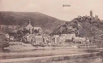 Beilstein (German pronunciation: [ˈbaɪ̯lʃtaɪ̯n] ⓘ) is an Ortsgemeinde – a municipality belonging to a Verbandsgemeinde, a kind of collective municipality – in the Cochem-Zell district in Rhineland-Palatinate, Germany. It belongs to the Verbandsgemeinde of Cochem, whose seat is in the like-named town.