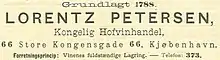 ![]() Advertisement for Lorentz Petersen published in Illustreret Tidende in 1887 | |