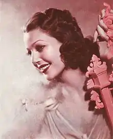 She was born Gretchen Young in Salt Lake City, Utah, the daughter of Gladys (née Royal) and John Earle Young.[1][2] She was of Luxembourgish descent.[3] When she was two years old, her parents separated, and when she was three, her mother moved the family to Hollywood. A priest helped Gladys to establish a boarding house as income. Gladys’ sister's husband helped the little girls get small parts in silent films for income. Gladys met Ida Botiller Lindley, a very wealthy widow, by 1925. Ida had no children, but wanted to carry on her husband's name; she proposed that she adopt Gretchen's brother John Royal Young, educating him to be a lawyer like her late husband. Thus, John Young became John R. Lindley, and he became a lawyer. Gretchen and her sisters, Polly Ann and Elizabeth Jane (better known as Sally Blane), all worked as child actresses, but of the three, Gretchen was the most successful. Polly, Sally and John Royal Young Lindley all died in 1997, in their 80s. John's son David Lindley became a well-known multi-instrumentalist rock musician.[4]