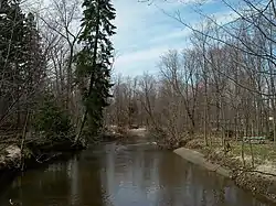 - 2.4 kilometres (1.5 mi) towards the north-east by crossing the Étienne-Lessard street, by collecting the Friches stream (coming from the north), up to the boulevard Chauveau Ouest.[2]