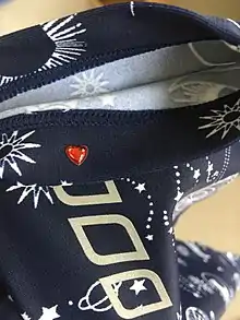 Every Lorna Jane garment has a small heart-shaped bead sewn into it somewhere; a message to consumers that the garment is made "with love".[12][7] Garment styles are named after Lorna Jane team members, with one team member saying "Seeing your name pop up on a monthly style sheet is as exciting as waking up on Christmas morning!"[7]