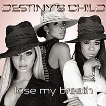 "Lose My Breath" is a song recorded by American group Destiny's Child for their fifth and last studio album Destiny Fulfilled (2004). It was written by Beyoncé, Kelly Rowland, Michelle Williams, Rodney Jerkins, LaShawn Daniels, Fred Jerkins III, Sean Garrett and Jay-Z. The song was partially developed by Jerkins before being presented to Destiny's Child; its chorus was afterwards rewritten by Jay-Z. An uptempo R&B and dance-pop song, "Lose My Breath" has a marching, military percussion-led instrumentation with different sound effects in its backing track. Columbia Records released the song as the lead single from Destiny Fulfilled on October 23, 2004.
