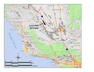 The Lost Hills Oil Field is a large oil field in the Lost Hills Range, north of the town of Lost Hills in western Kern County, California, in the United States.