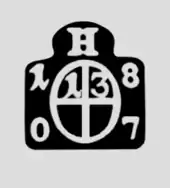 The lot was defined as the sixteenth part of a Mark.[3][4] For example, in silver, the total weight was divided into 16 (proportional) Lots until about 1857, according to which a "12-Lot" silver alloy (750 silver) contained 12/16 = 3⁄4 or 75% by weight of silver and 25% of another metal (usually copper). A 14-Lot silver alloy (14⁄16), on the other hand, corresponded to 875 silver. For refinement, a Lot was further divided into 18 grains.[4] Thus 14 Lots, 4 grains fine then correspond to a fineness of 888.89 ‰ = (14 + 4 / 18) / 16 = (252 + 4)/288, i.e. 256/288 grains.