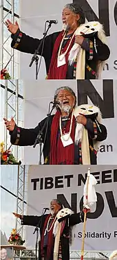On 13 May 2013, Namling started what he called A Journey for Freedom – One Man, One Path.[2] He walked from the Swiss capital of Bern to Geneva, dragging a black coffin around to attract attention. Arriving on 8 July, he performed with some 13 more musicians, amongst them renowned Swiss band The Young Gods whose singer Franz Treichler had strongly supported the artist's action and had organized the performance on Place des Nations, in front of Geneva UN headquarters.[3] It inspired Tibetan Warrior, a documentary film directed by Dodo Hunziker and produced by Urs Schnell, about the quest of Loten Namling from Europe to India where he met with politicians, experts and young radicalists before requesting the Dalai Lama his advice.[4]