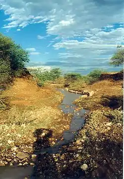 All the rivers in the Lotsane basin are dry throughout the year, experiencing ephemeral flow during the summer rainy season. People in nearby areas collect water stored in the sandy riverbed.[2]