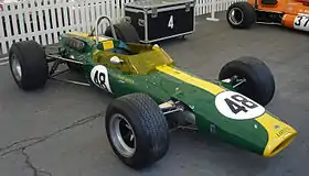 Graham Hill persuaded Colin Chapman to take the new car to the 1967 Australian Grand Prix, where it ran as high as third before succumbing to gearbox failure.[3] Thereafter it was run by Team Lotus in the 1967 Formula Two season, driven by Hill and Jim Clark, and occasionally by Jackie Oliver. Clark scored three wins, and several poles and fastest laps between him and Hill. Oliver drove the car in the 1967 German Grand Prix which was run for Formula One and Formula Two cars; he finished first of the Formula Two entries and fifth overall.[4]