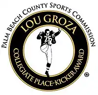 The Lou Groza Award is presented annually to the top college football placekicker in the United States by the Palm Beach County Sports Commission. The award is named after former Ohio State Buckeyes and Cleveland Browns player Lou Groza. It has been presented since 1992, with Joe Allison of Memphis State receiving the inaugural award. The incumbent award holder is Graham Nicholson of Miami University. The award is part of the National College Football Awards Association coalition.