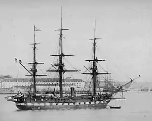 In January 1862 Lafont was again aide-de-camp of Admiral Rigault de Genouilly, commander of the training squadron. on the Bretagne, then on the Ville de Paris. In April 1863 he took command of the aviso Caton. He was second in command of the imperial yacht Aigle in July 1865. On 6 April 1867 he was promoted to capitaine de vaisseau (ship captain). From 1868 to 1870 Lafont commanded the ironclad Héroïne in the training squadron, flagship of Albert Gicquel des Touches.[3]