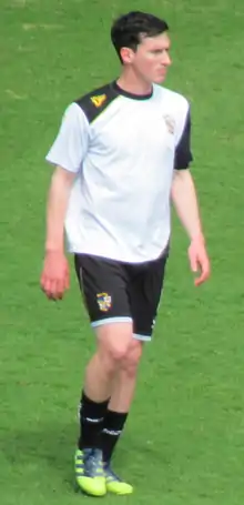 He scored twice in a 3–0 win over Crewe Alexandra on 9 April, which relegated Crewe and earned himself a place on that week's Football League Team of the Week.[50][51] He ended the 2015–16 campaign with eight goals in 44 appearances, and was voted Away Travel Player of the Year.[52] After choosing to leave the club in the summer, he described how it was "an honour and a privilege to represent the club for eight years of my career" and that "I will always have a huge amount of love and respect for both the club and the fans".[53]