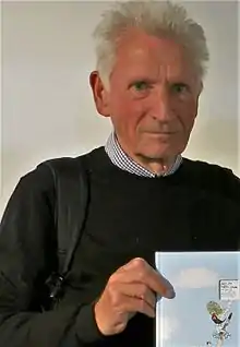 Louis Jensen was born in Nibe, Denmark close to the Limfjord in northern Jutland. He described his mother's childhood in the biographically based book, "En historie om seks søstre" ("A story of six sisters," Gyldendal, 2009).[18] His family moved from Nibe to Beder, south of Aarhus, when he was 12. The move was painful for Jensen; he missed his friends and he longed for the woods and waters of his childhood home.[19] Memories of his childhood in Nibe are found in many of his works, including his 2014 collection of short prose pieces, "Elefanterne holdt hver gang med Tarzan" ("The elephants always sided with Tarzan"), which "turns the story of Jensen's childhood into mystic stuff, into literature."[19] As a young man, Jensen studied to be an architect, with a specialty in urban planning, and he worked as an architect and city planner for a private firm next to the Aarhus townhall.[20] He published his first poem in 1970 in the literary magazine "Hvedekorn," and his first book of poetry in 1972.[21] His first novel for young readers, "Krystalmanden" (The Crystal Man), was published in 1986. Beginning in 1992, he worked full-time as an author.[20] He lived in Aarhus, Denmark, with his wife, the painter Elisabeth Wegger. He had three grown children, and several grandchildren. He died in Aarhus on March 4, 2021, after suffering a heart attack while bicycling with friends.