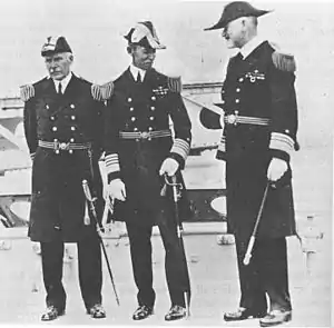 His first command was the gunboat Nashville in 1913, followed by the armored cruiser Montana.[1] In 1914, while commanding Montana, he led landing parties ashore during the United States occupation of Veracruz.[3] In 1918 he was given command of the Atlantic Fleet battleship Pennsylvania, and served as Pennsylvania's captain when it escorted President Woodrow Wilson to and from the Paris Peace Conference.[2]